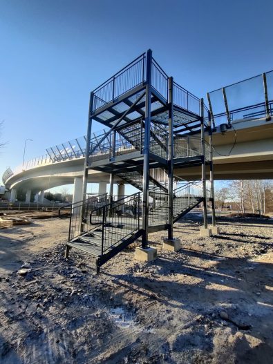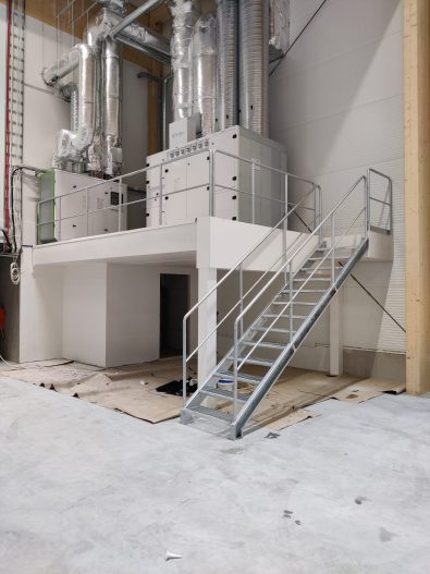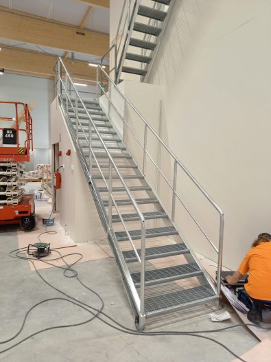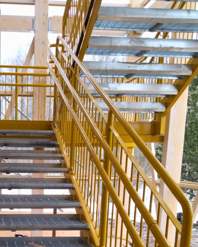 Steel stairs are designed according to the project’s needs and manufactured in our own production facility. Structures go through a clear quality control process, where dimensioning, connection to the building, and finishing are checked before delivery.
