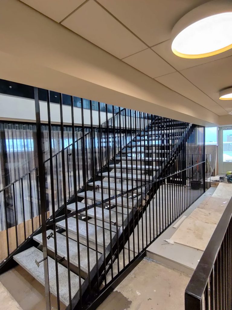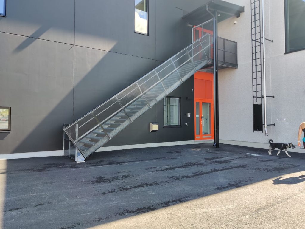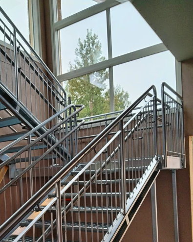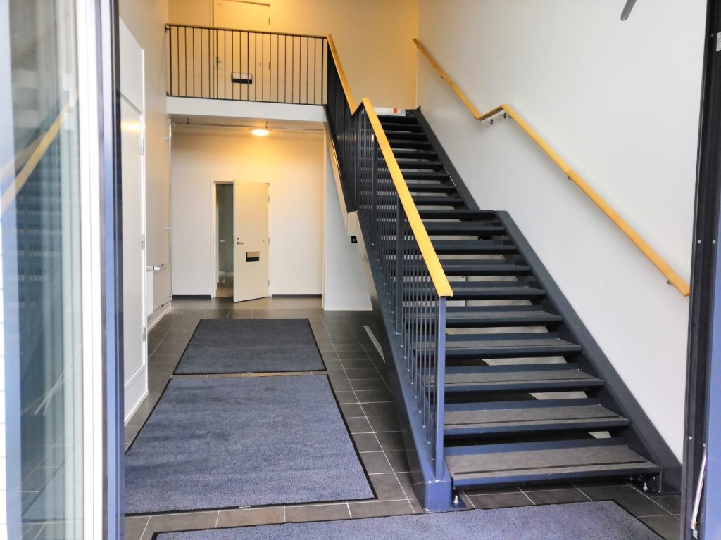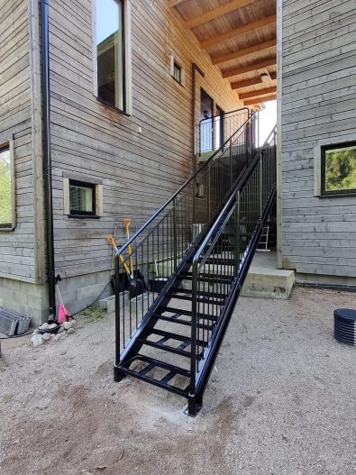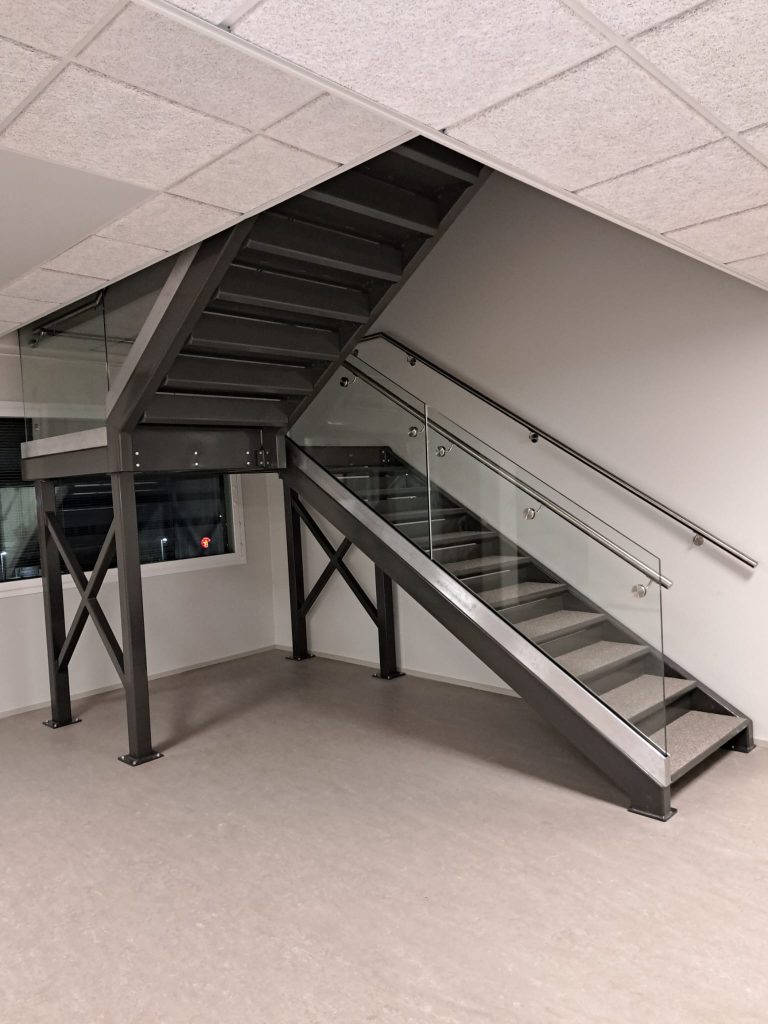 Straight steel stairs are often part of a load-bearing whole, not a separate element. Usage rate, loads, traffic directions, and environment set requirements for the frame, treads, and railings. We approach steel stairs through the structure. Long experience from various projects helps dimension the stairs so that they work in practice and meet requirements without unnecessary compromises.