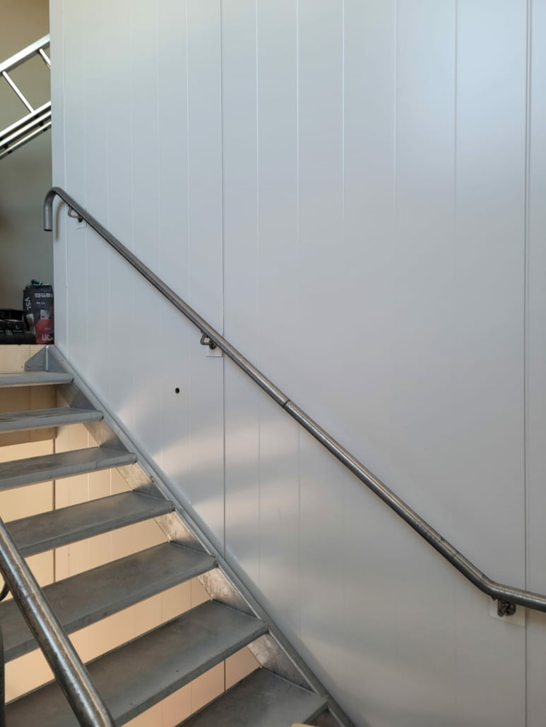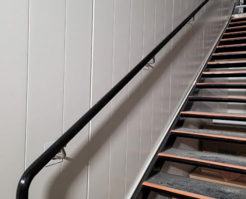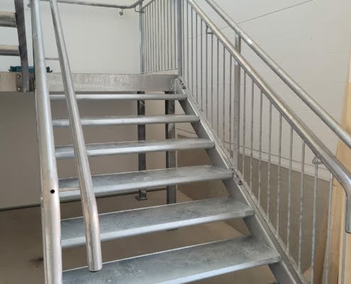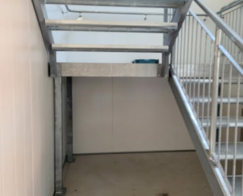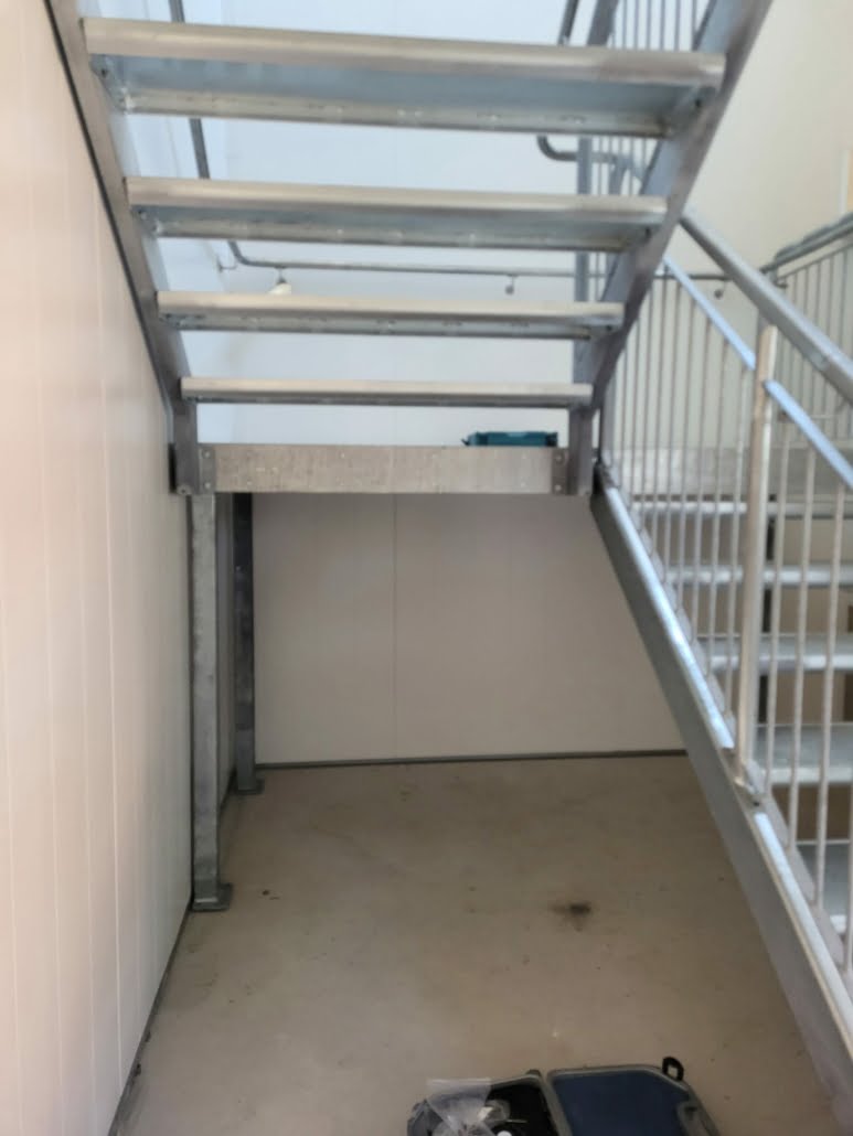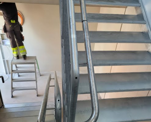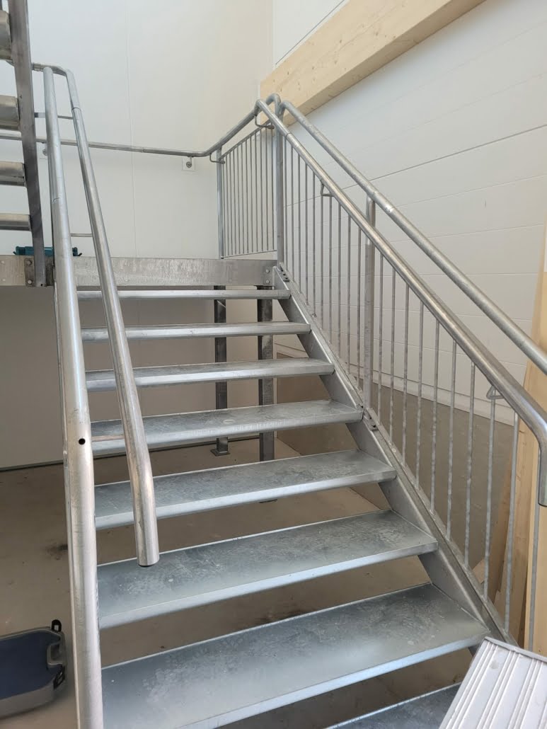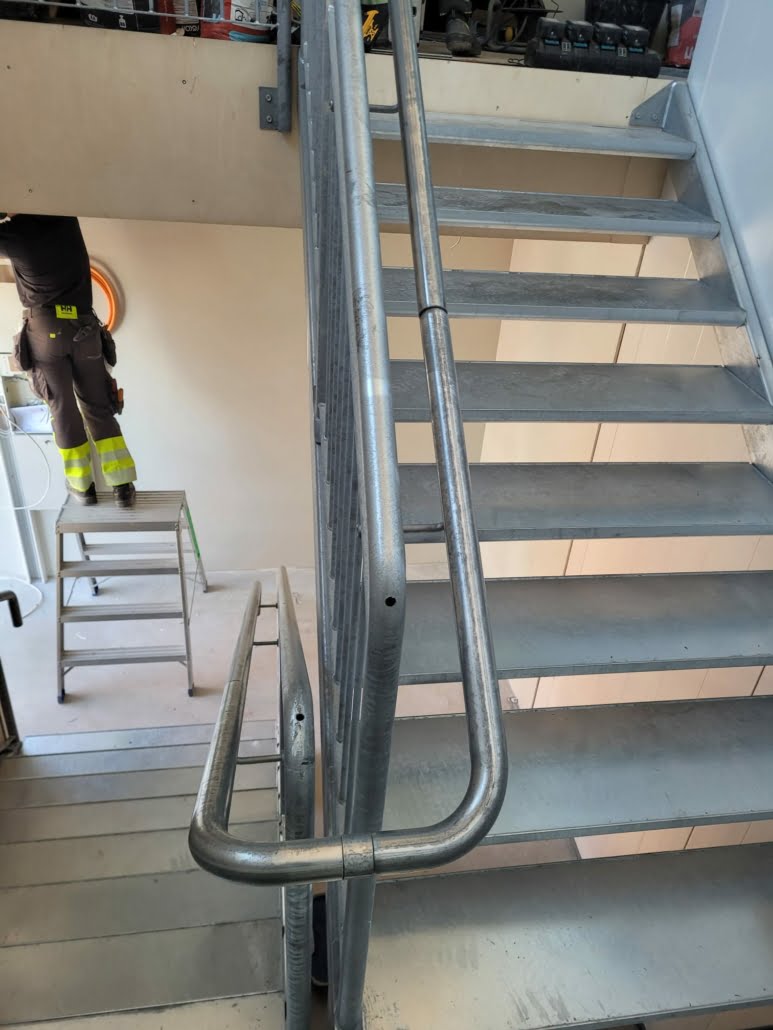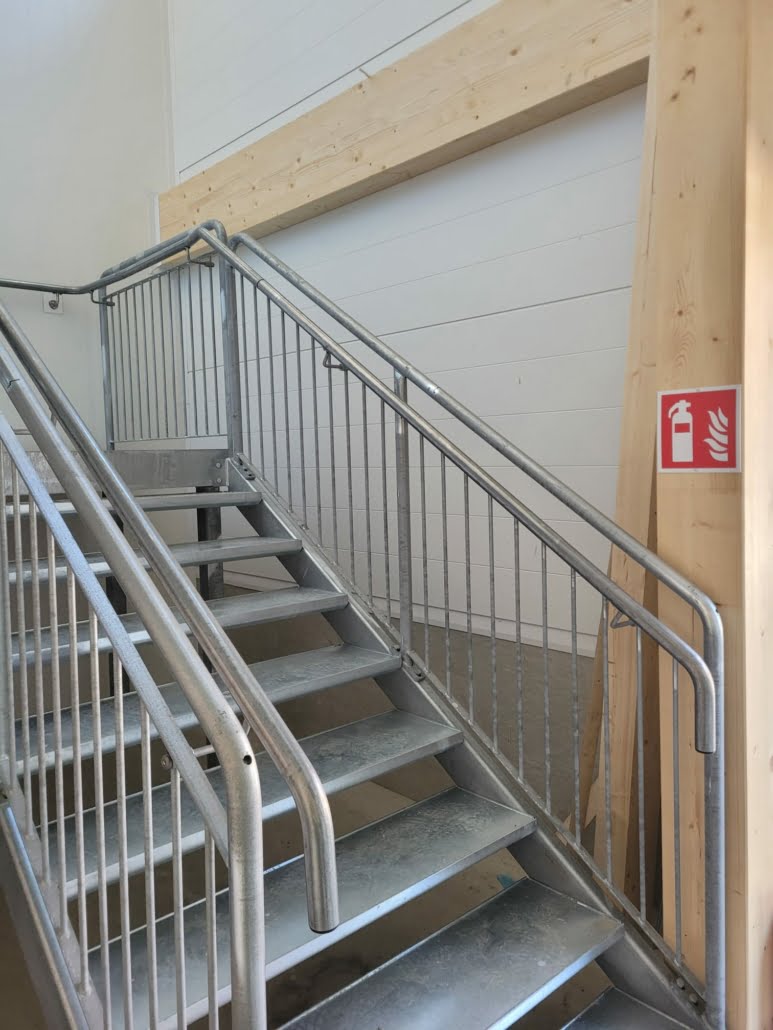 Portaat olivat kaikki paloluokiteltu luokkaan R30. Paloluokituksen takia esimerkiksi suorien portaiden sivupalkit olivat RHS-palkkeja, kun yleensä suorissa portaissa käytetään c-profiilia. Asennus sujui vaivattomasti ja aikataulussa.