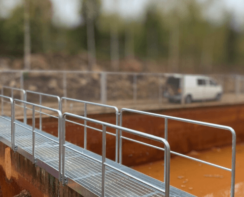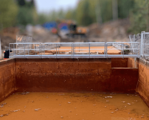 Pohjois-Savon kohteessa toimitettiin kaksi kulkusiltaa saostusaltaan päälle. Siltojen asennus sujui tehokkaasti, kun ne koottiin ensin valmiiksi ja laskettiin paikoilleen kahdessa osassa.