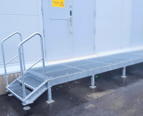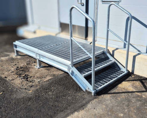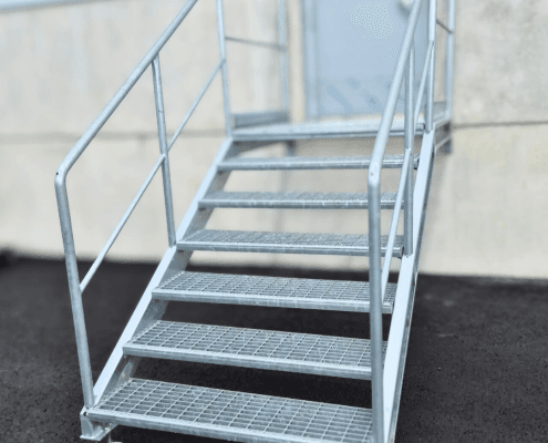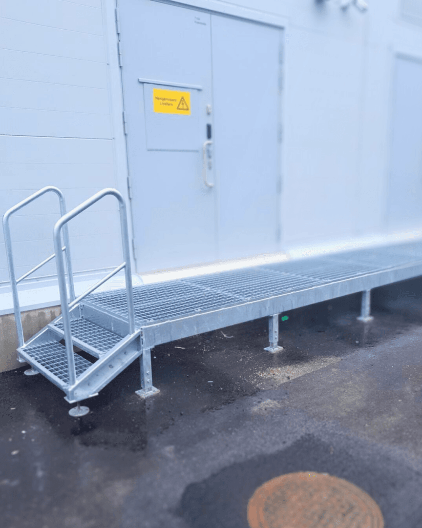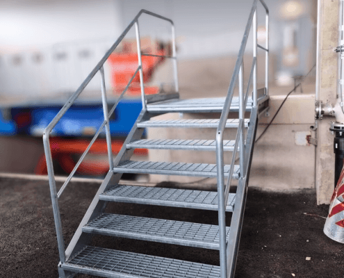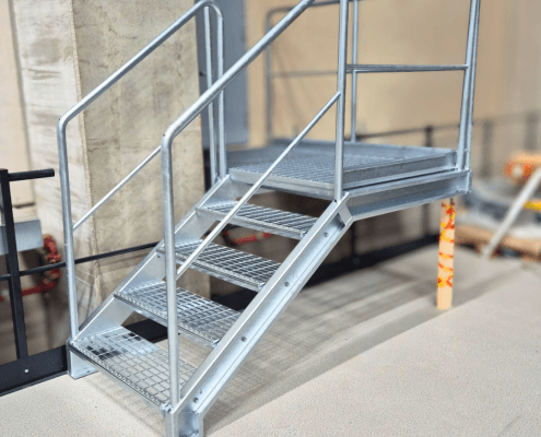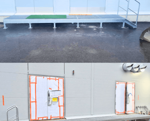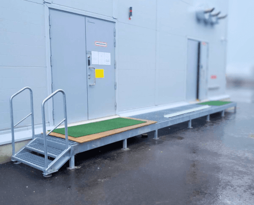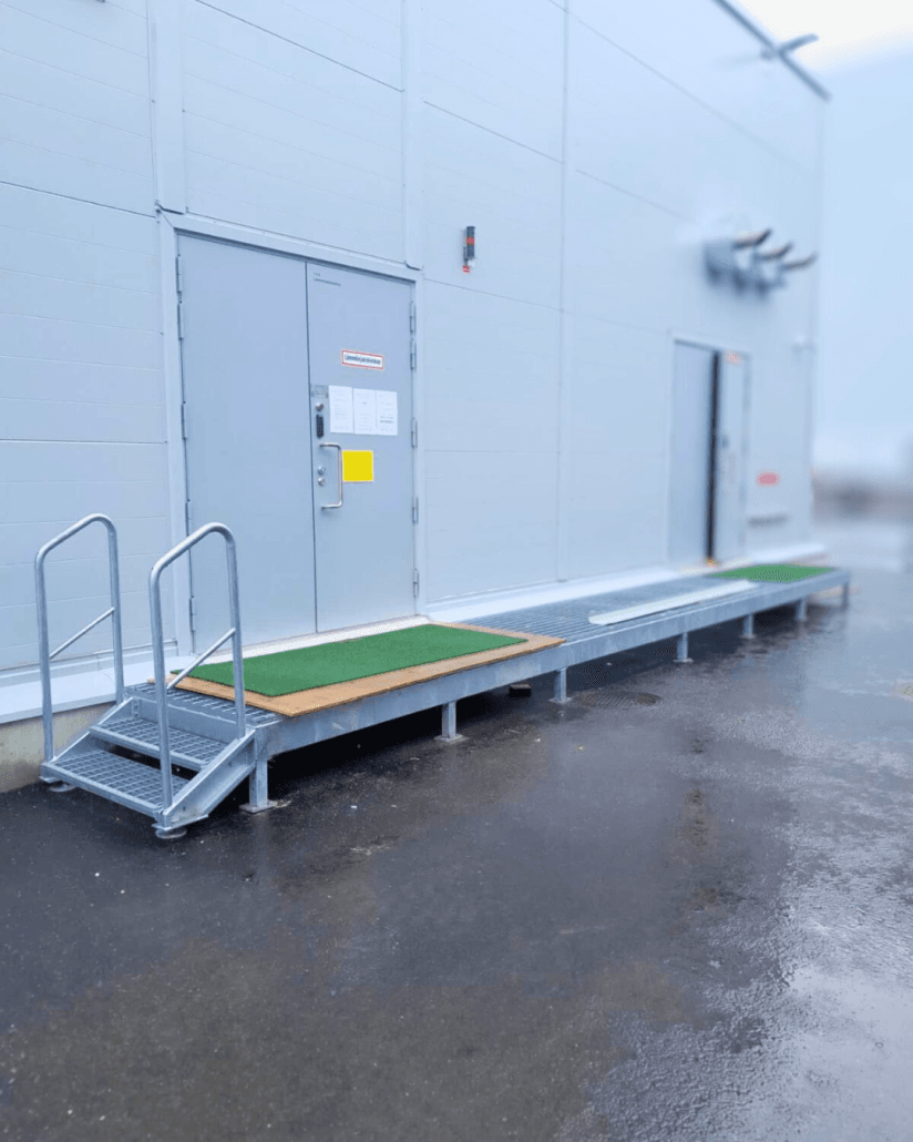 Portaat ja tasot ovat olennainen osa logistiikkakeskuksen arkea ja jokainen porras on tehty käytettävyyden ja turvallisuuden näkökulmasta. Kuumasinkityt ratkaisut varmistavat, että rakenteet kestävät niin sisäkäytön, ulko-olosuhteet kuin kovankin kulutuksen sekä pysyvät turvallisina ja huoltovapaina pitkään.