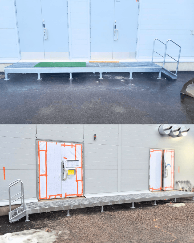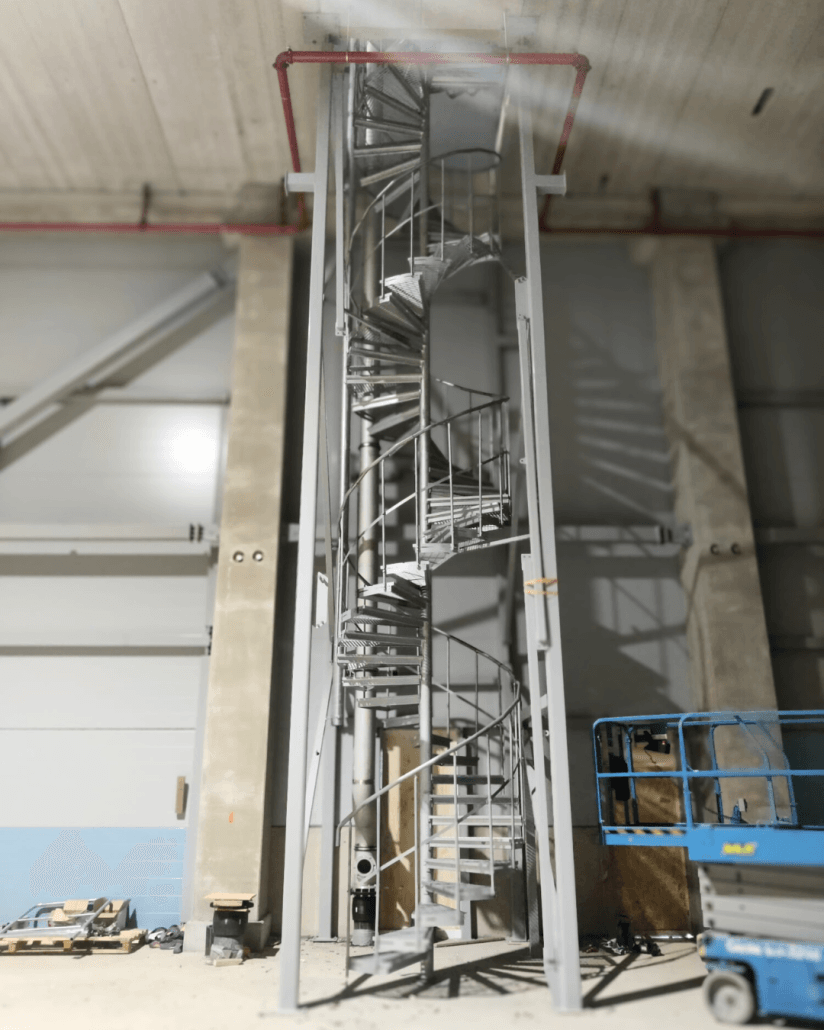 Logistiikkakeskuksissa liikkuminen ja tavaravirtojen hallinta vaativat kymmeniä erilaisia kulkuyhteyksiä: suuria kierreportaita poistumiseen ja sisäliikkumiseen sekä kymmeniä pienempiä portaita lastaustaskujen yhteyteen. Tavoitteena oli varmistaa, että jokainen ratkaisu on mitoiltaan täsmällinen, helppo asentaa ja ennen kaikkea turvallinen kovassa käytössä.