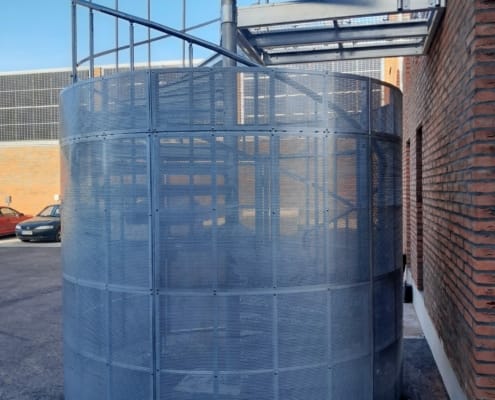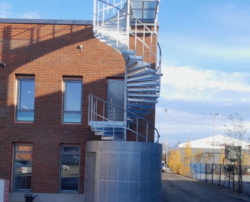 Hallin laajennuksen kierreportaat ja suojakehä