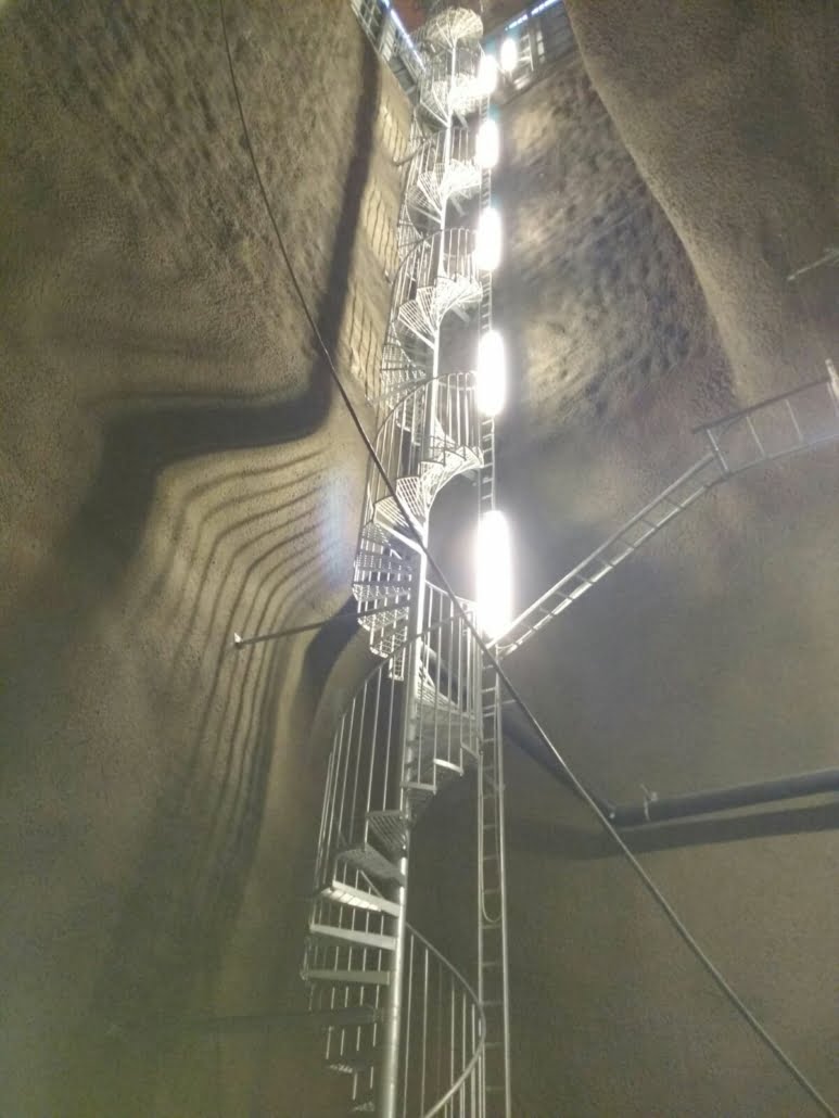 Kymmenennellä sijalla on kierreporras, joka on asennettu hätä- ja kulkutieksi elokuussa 2023. Kierreportaassa on käytetty LK Portaan yleiskaidetta, joka on nopea ja kustannustehokas valinta. Pinnojen välin täytyy olla hätäpoistumistiessä alle 100mm, ja tämä kaidemalli täyttää sen aina. Askelmat ovat ritilää.